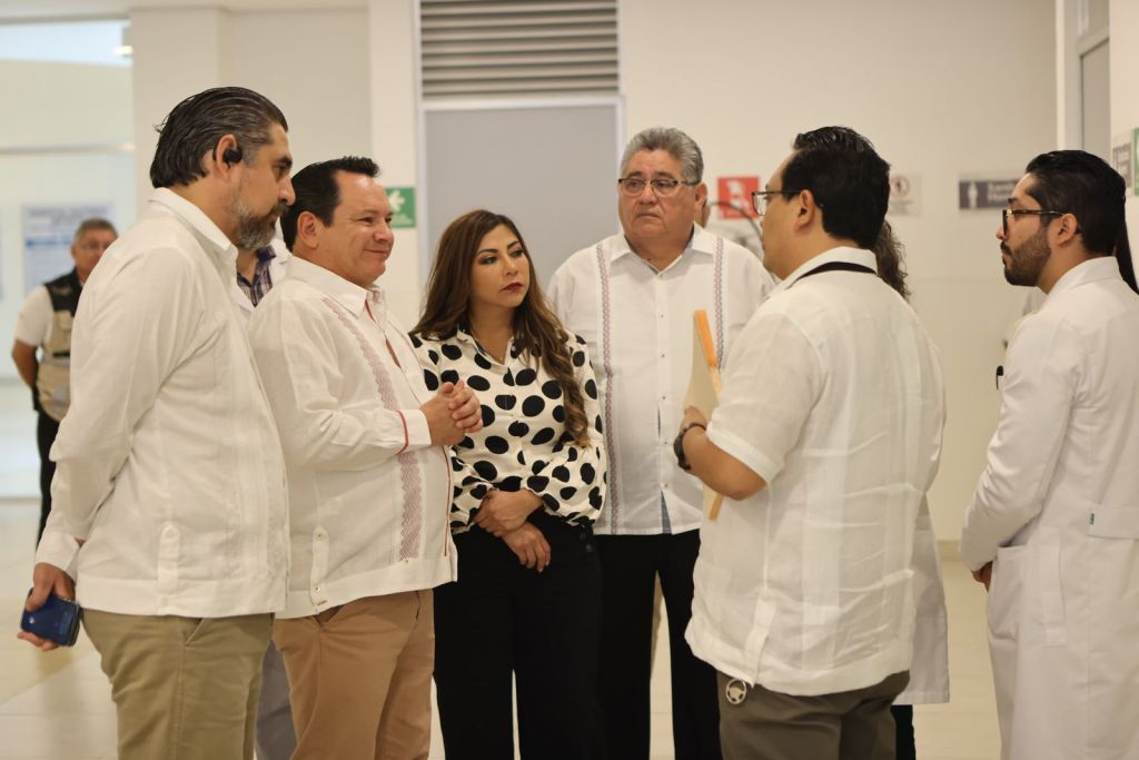 Junto con la titular de la Secretaría de Salud del Estado (SSY), Judith Elena Ortega Canto, y el director del Hospital Materno Infantil, Jesús Guillermo del Río Bojórquez, Díaz Mena se dirigió a las zonas de quirófanos y laboratorio clínico e imagenología, donde conoció sobre su operación, así como el equipamiento con que cuentan.