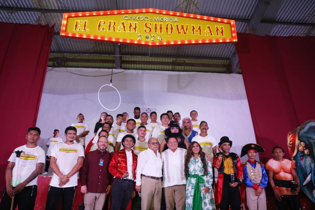 · El gobernador Joaquín Díaz Mena disfruta la obra musical “El Gran Showman” en el Cereso de Mérida. – el director del Cereso resaltó que esta es la primera ocasión en la que un gobernador, acompañado de su familia, recorre las áreas internas del penal.