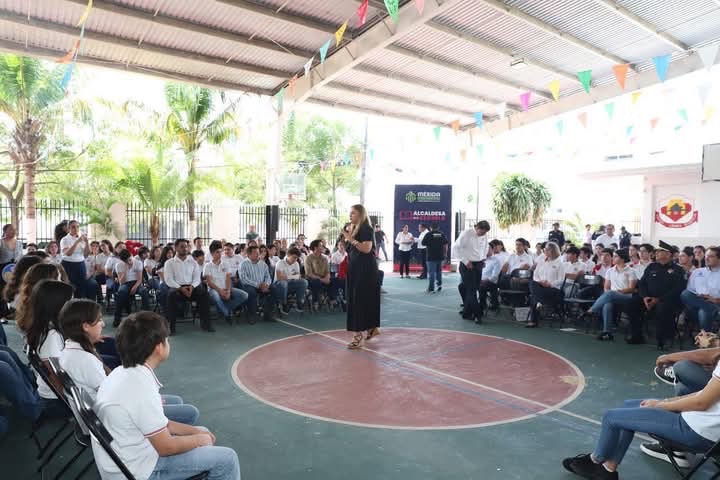 Durante su visita, la alcaldesa destacó la importancia de la educación y la prevención para construir una sociedad más segura y equitativa cimentada en el orgullo de nuestras raíces y costumbres mayas.