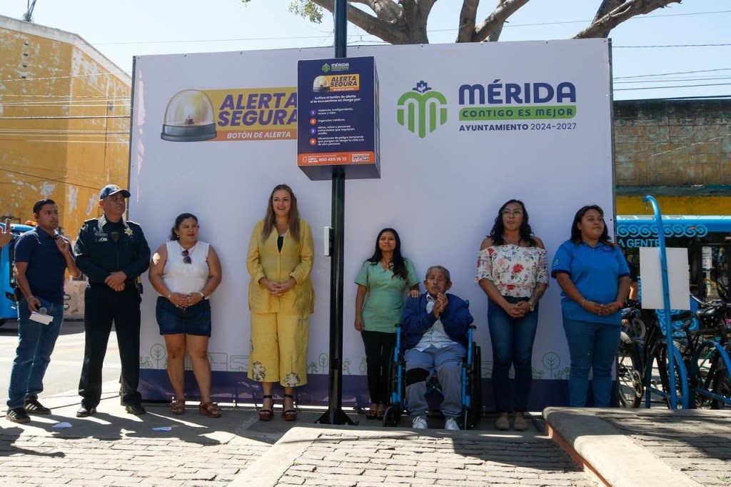 La Presidenta Municipal de Mérida, Cecilia Patrón Laviada, puso en marcha el botón “Alerta Segura” en el parque de San Cristóbal, como parte de las acciones para fortalecer la seguridad y tranquilidad en el Centro Histórico.