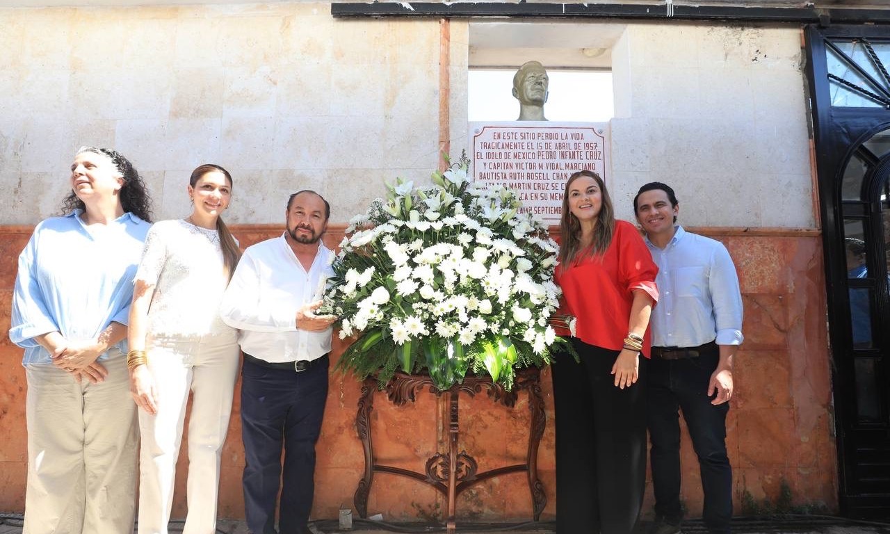 Mérida, Yucatán a martes 15 de abril de 2025.- La Presidenta Municipal de Mérida, Cecilia Patrón Laviada, encabezó la celebración del aniversario luctuoso de Pedro Infante, ícono de la cultura mexicana y actor de la época de oro del cine mexicano.
