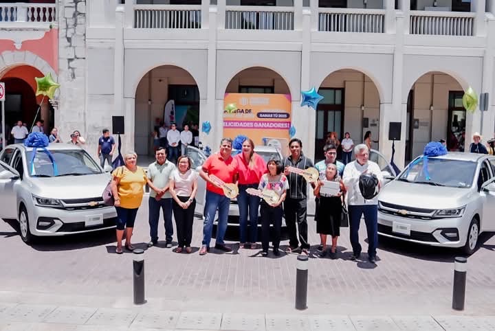 En breve ceremonia entregó las llaves de los tres vehículos Chevrolet Aveo 2025 tipo sedán, a Noemí del Rocío Avilés Marín, Francisco Javier Cazares González y Adolfo José Chaparro Flores. También recibieron sus premios Jaime Medel Herrera (Motocicleta Suzuki Burman Street), Víctor Orlando Catzim Catzim (Laptop Inspiron de 15.6), Carmen Avilés Rodríguez (televisores Samsung de 43 pulgadas UHP 4K) y Rosa María Flores (tablets iPad de novena generación).