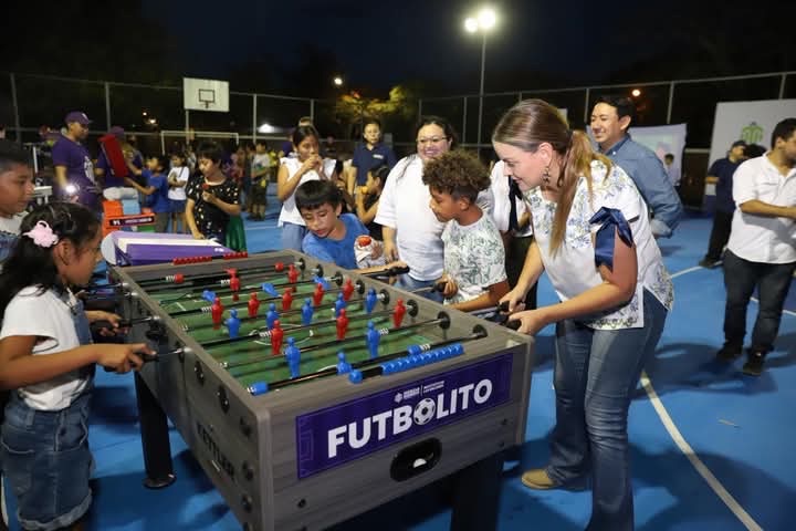 En otra actividad, la alcaldesa, acompañada del comisario Rafael Chairez Cuevas, inauguró el Torneo Familias Sin Violencia en la comisaría de Molas, en el marco del programa “Mérida te cuida” donde niñas, niños y jóvenes aprendieron a gestionar emociones, resolver conflictos y rechazar el acoso escolar. Con deporte y empatía, se busca sembrar una Mérida más respetuosa y en paz.