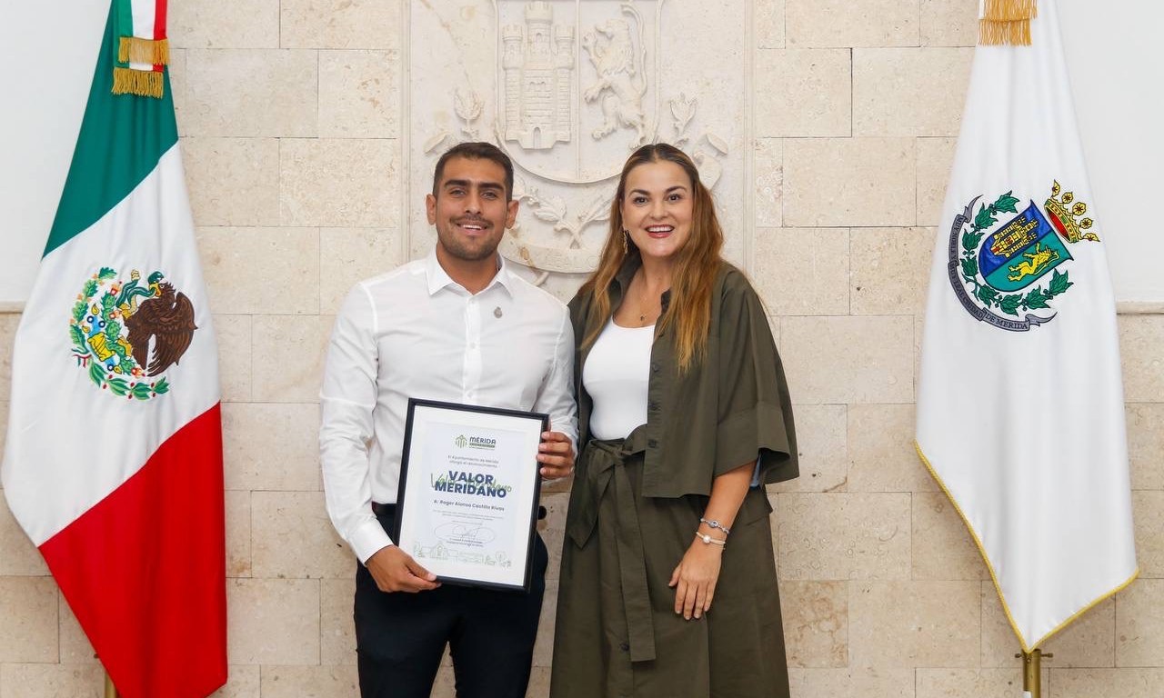 Acompañado de su familia, Castillo Rivas recibió de manos de la Presidenta Municipal de la capital yucateca este distintivo que reconoce las acciones y hechos que hacen a una persona ejemplar y distinguible y que son orgullo para las y los meridanos.