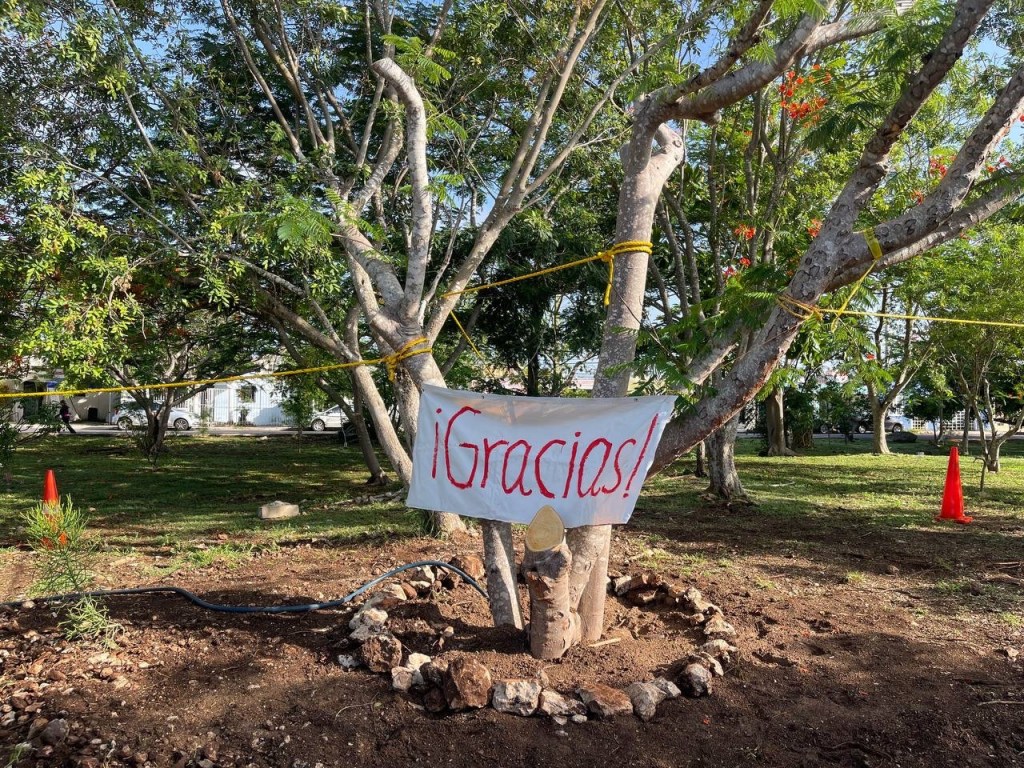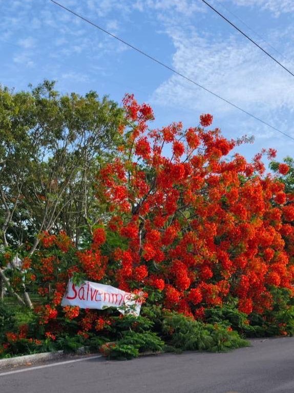 Mérida, Yucatán, domingo 22 de junio de 2025.- El Ayuntamiento de Mérida y vecinos del fraccionamiento Pinos del Norte se unieron para salvar un árbol de flamboyán que fue derribado por las lluvias este fin de semana.