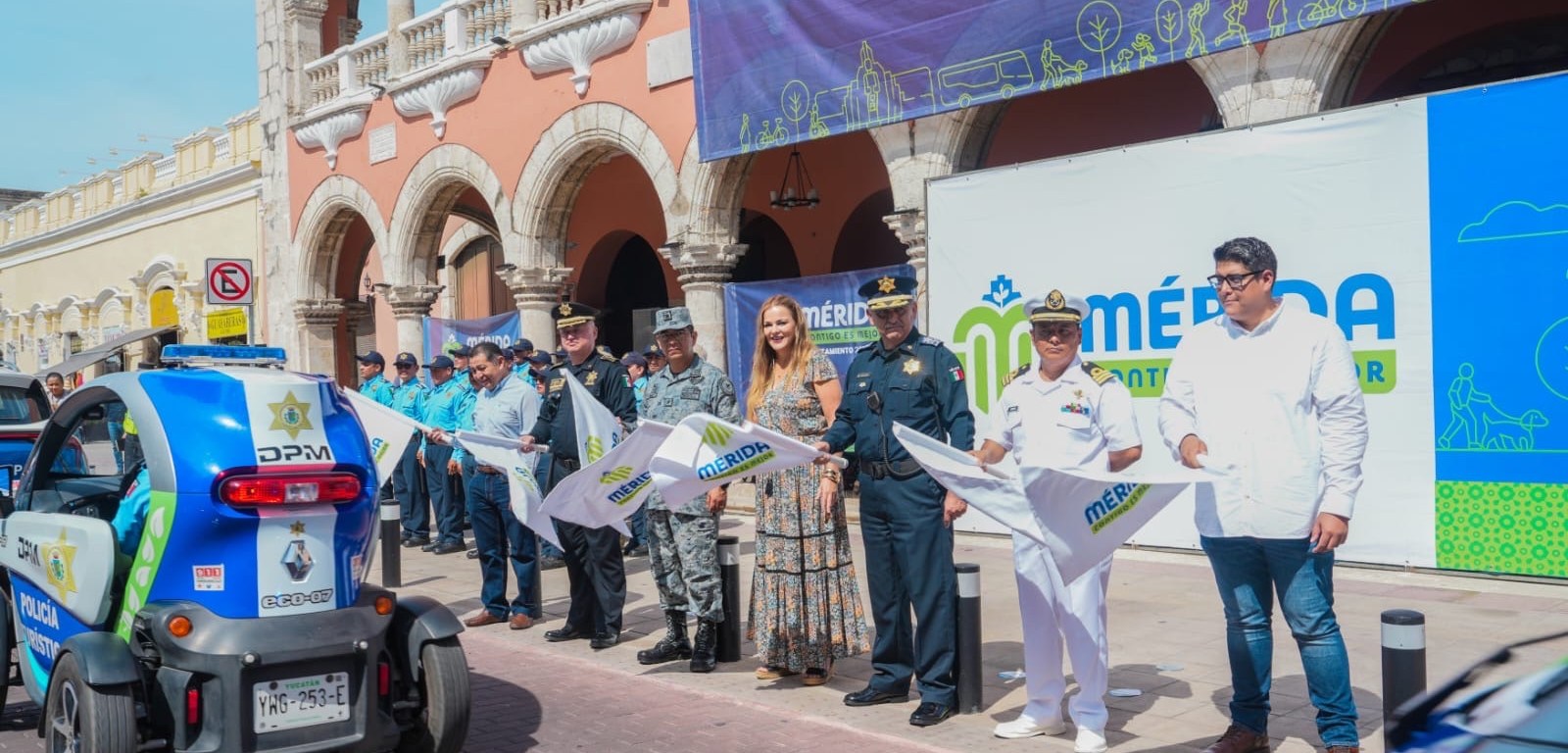 Mérida, Yucatán, miércoles 9 de julio de 2025.- Para garantizar la seguridad de paseantes de todo el mundo que vienen a disfrutar de la oferta turística de Mérida en este periodo de vacaciones, la presidenta municipal Cecilia Patrón Laviada puso en marcha el Operativo Verano Seguro de la Policía Municipal desde los bajos del Palacio del Ayuntamiento.