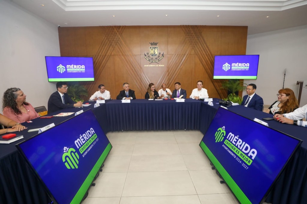 Por el Ayuntamiento de Mérida, Edgar Ramírez Pech, secretario municipal; Mauricio Díaz Montalvo, director de Prosperidad y Bienestar Económico; Karla Berrón Cámara, directora de Identidad y Cultura; Teresa Lissette Estrada Ortega, directora de Innovación y Gobierno Inteligente y Armando Casares Espinosa, Secretario Técnico de la Unidad de Turismo.