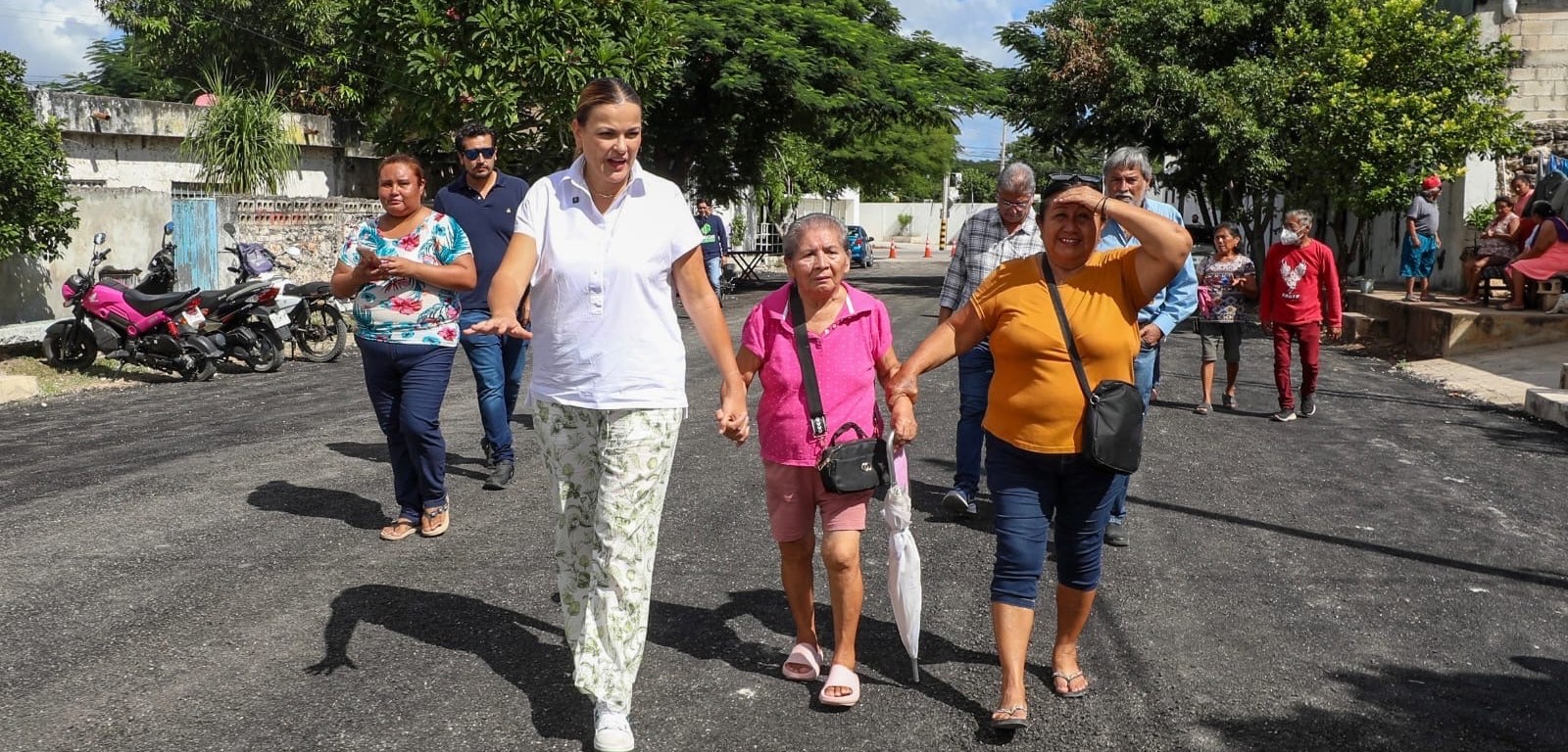 Acompañada de Sergio Chan Lugo, director de Obras Públicas; Luis Jorge Montalvo Duarte, director de Servicios Públicos, y la regidora Paulina Sánchez Díaz, se trasladó al fraccionamiento Yucalpetén.