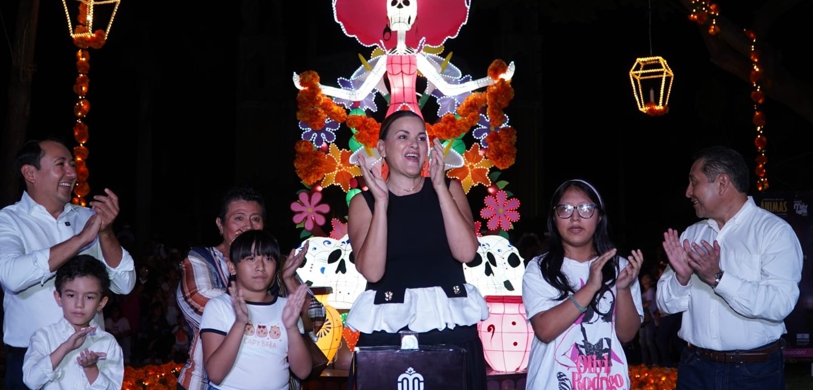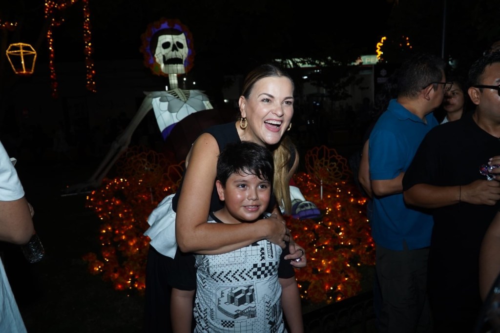 Mérida, Yucatán, sábado 25 de octubre de 2025.- Ante más de 5 mil meridanas, meridanos y visitantes, la presidenta municipal de Mérida, Cecilia Patrón Laviada, inauguró el Festival de las Ánimas 2025, con la iluminación de figuras monumentales que conmemoran la vida y la muerte instaladas en el Parque de San Juan.