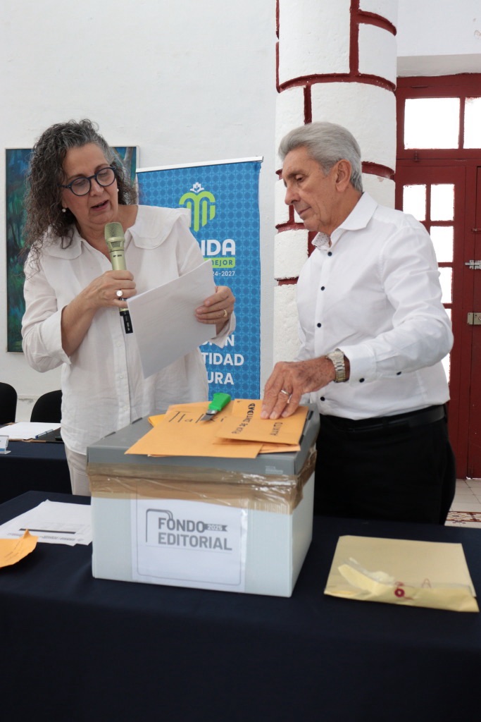 Karla Berrón Cámara, directora de Identidad y Cultura y Josué Morelos Echeverría, subdirector de Conservación y Difusión Patrimonial, celebraron que el fondo editorial siga apoyando la creación literaria y nuevas plumas respondieron a la convocatoria, Atestiguó la apertura de plicas el Lic. Mauricio Alberto de Jesús Tappan y Repetto, de la Notaría No. 45.