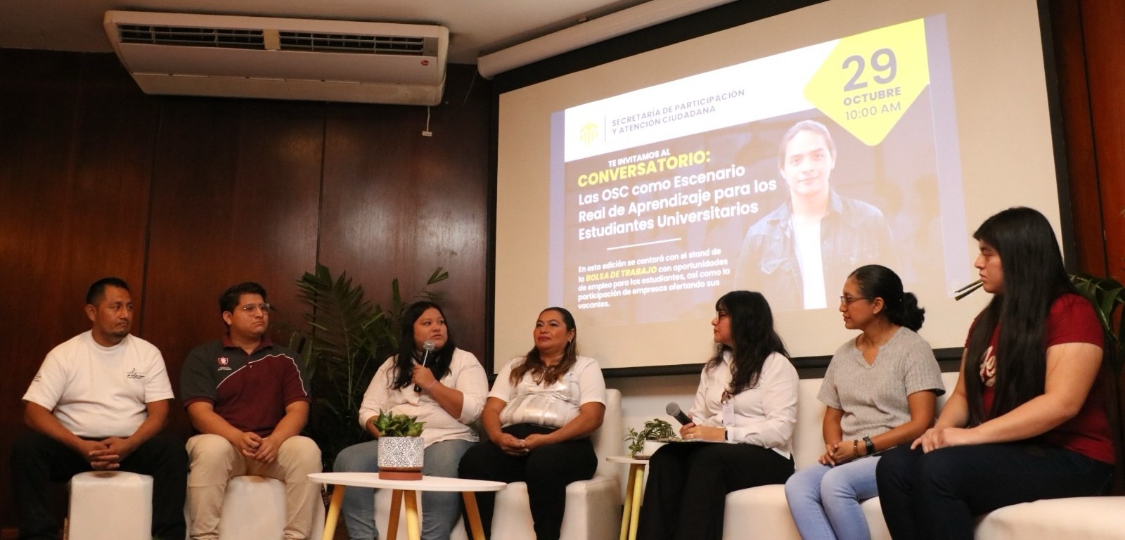 Mediante el conversatorio “Las OCS como Escenario Real de Aprendizaje para los Estudiantes Universitarios”, más de 60 estudiantes de 16 universidades escucharon sobre las experiencias y aprendizajes que han obtenido otros jóvenes durante su estancia en distintas organizaciones.