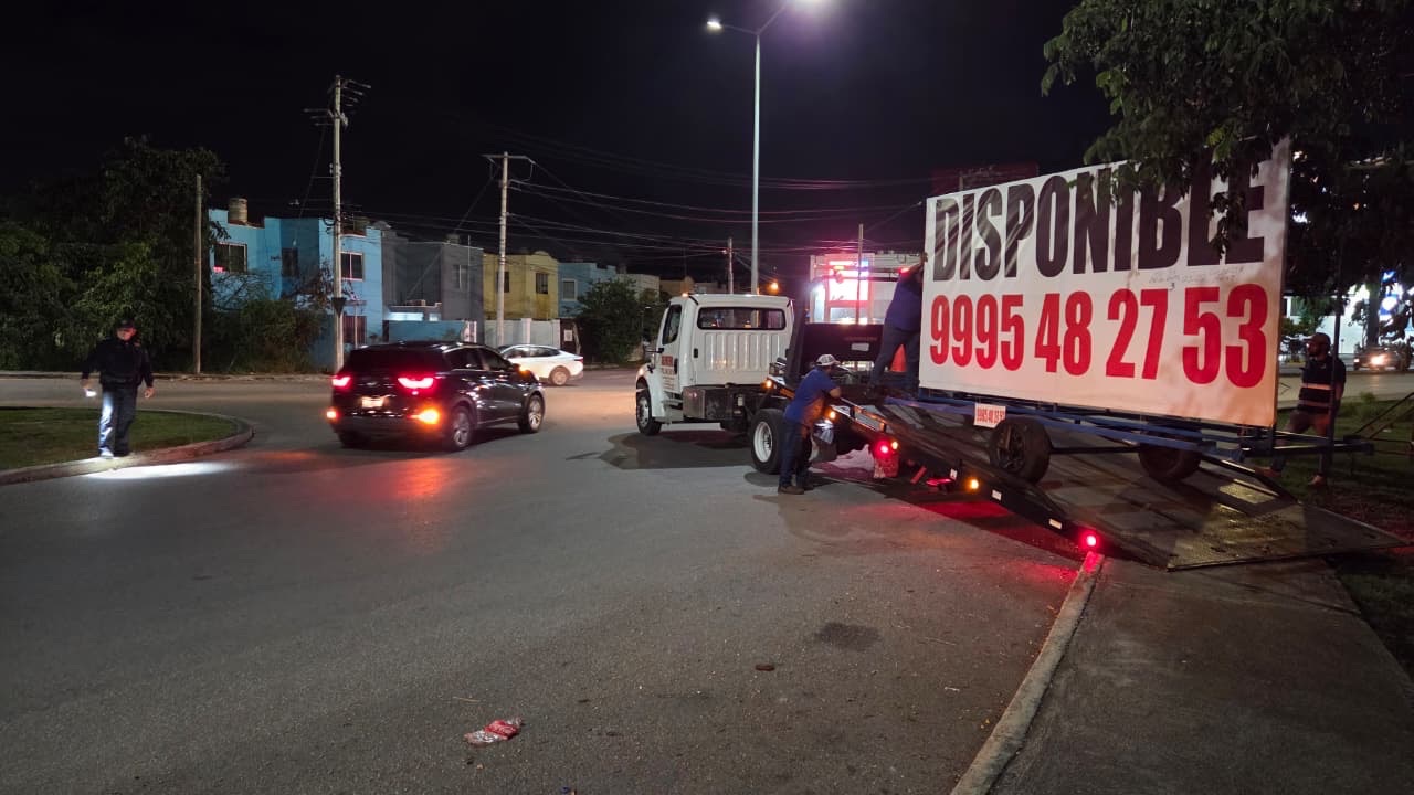 Durante el operativo, en el que participaron 20 trabajadores municipales, se utilizaron camionetas y dos grúas para retirar cuatro remolques publicitarios de grandes dimensiones, así como seis vallas y 15 lonas colocadas entre las calles 35 x 28D y 41 de la citada colonia.