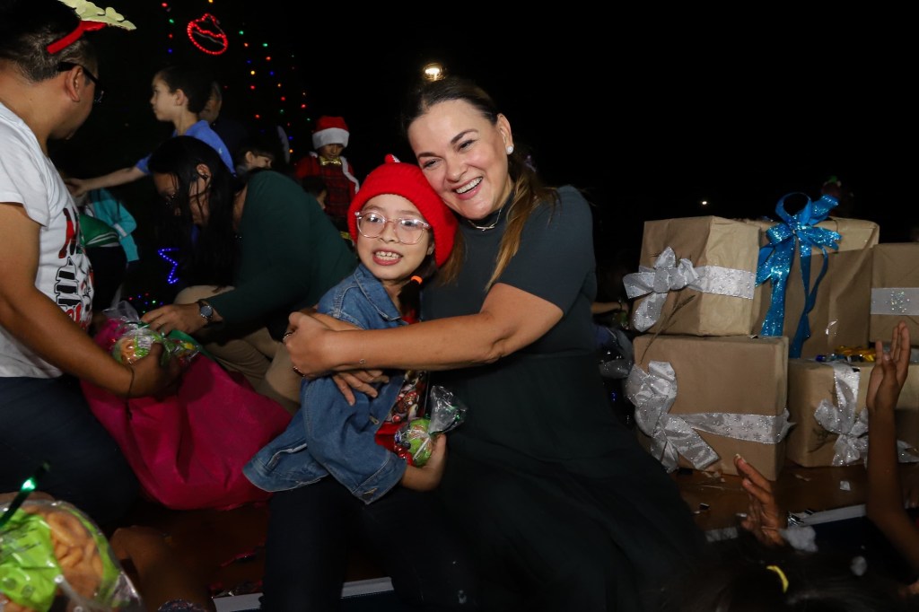 Mérida, Yucatán, lunes 1 de diciembre de 2025.- Cientos de familias se unieron a la presidenta municipal Cecilia Patrón Laviada en el encendido del árbol y la iluminación del Parque Arqueoecológico de Oriente en el Fraccionamiento del Parque, en el marco de la fiesta Mérida Brilla que organiza el Ayuntamiento para celebrar la Navidad.