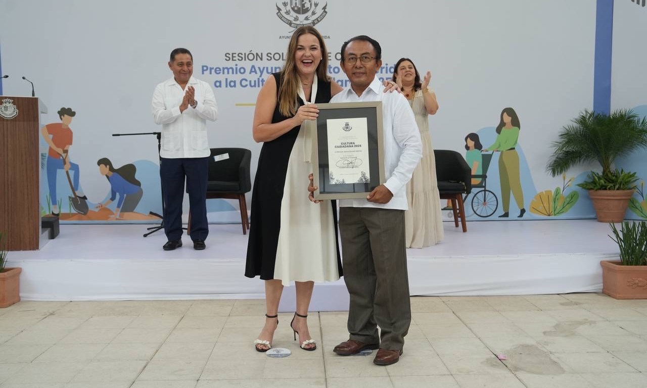 Los recipiendarios del Premio Ayuntamiento de Mérida a la Cultura Ciudadana 2025 son: Martha Sam Yick Domínguez, presidenta de la Asociación Alas Unidas con Liam (Valores Ciudadanos); Comedor Zarigüeyas, representante Marina Buenrostro (Participación Ciudadana Solidaria); Carlos Alberto Cobá Loría (Convivencia con el Entorno Ambiental); Sra. Elena Clementina Fernández Moral (Tradiciones, Usos Y Costumbres); Manuel Jesús Zavala Gómez (Historia y Crónica); Diego Mariano Olivera Cal, Convoy Teatro (Empresas Culturales); y el Chef Roberto Solís Azarcoya (Gastronomía).