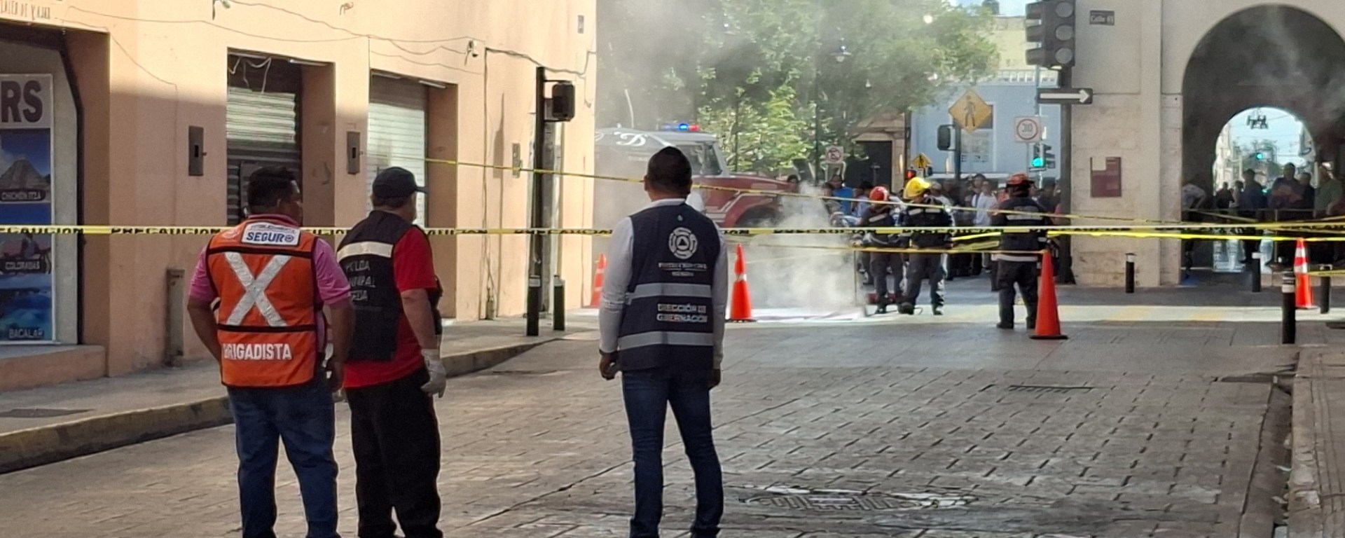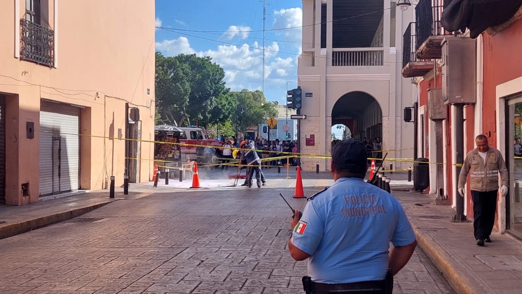 Brigadistas de Protección Civil con apoyo de la Policía Municipal de Mérida acordonaron el cruce de la 62 con 61.