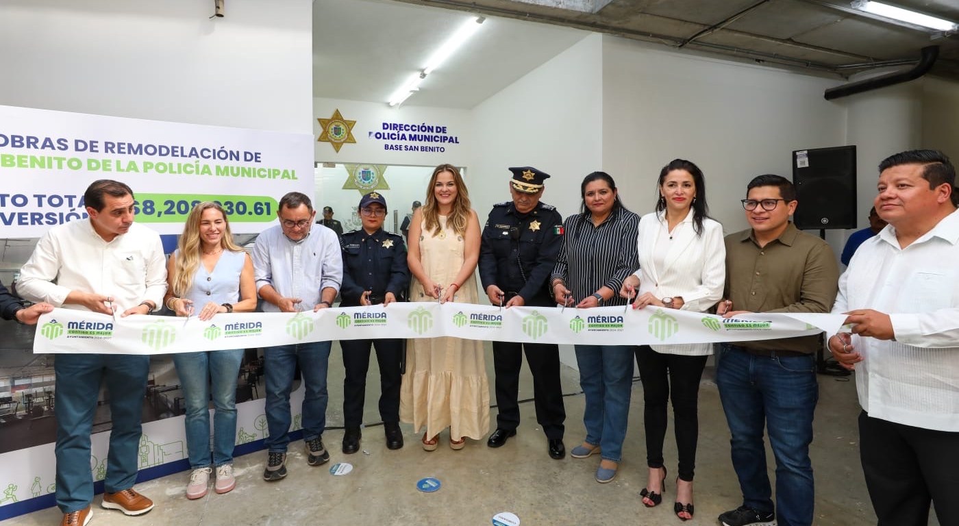 Mérida, Yucatán, a miércoles 25 de marzo de 2026.- Como parte del compromiso de fortalecer la seguridad desde una visión humana y cercana, la presidenta municipal Cecilia Patrón Laviada entregó los trabajos de remodelación de la Base de la Policía Municipal ubicada en el mercado San Benito, un espacio estratégico del Centro Histórico para tranquilidad de las familias meridanas.