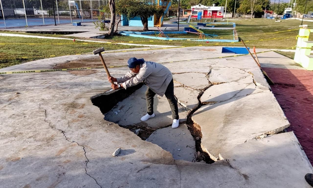 El director de la dependencia , Luis Jorge Montalvo Duarte, informó que, derivado de las recientes lluvias, personal de la dependencia acudió al sitio para verificar las condiciones del área señalada, donde se detectó un deslizamiento de material que afectó una superficie aproximada de 2 metros de diámetro.