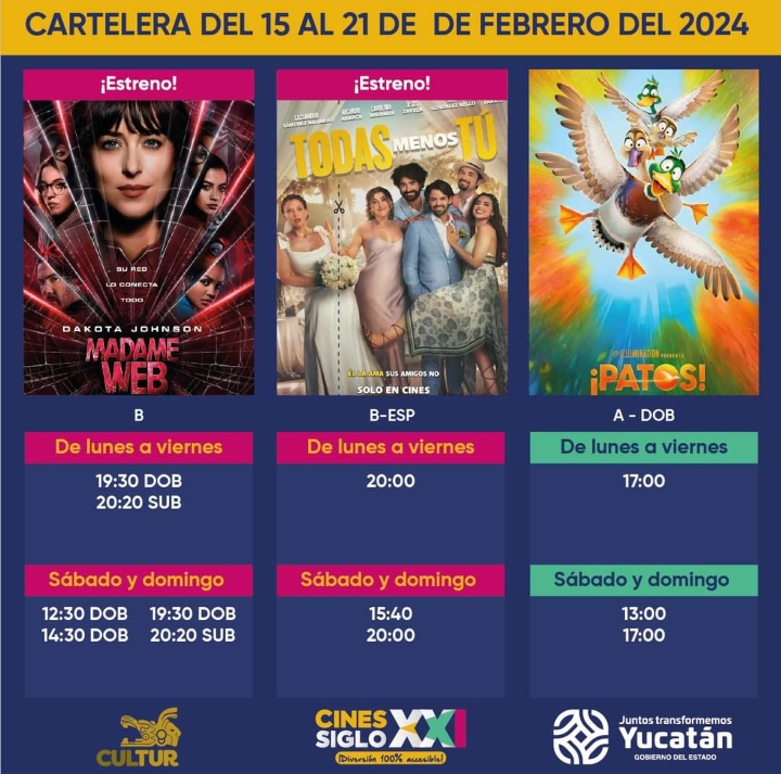 🕸 #MadameWeb llega a los #CinesSigloXXI. Cuando acepte la responsabilidad, aceptará el poder 🕷😱¡También tenemos en estreno la película mexicana #TodasMenosTú!🥳💘¡Y para que te enamores más, seguimos al #2×1 de #Lunes a #Viernes, en #TodaLaCartelera* (sí, también estrenos)! 💘*Se aplican restricciones Continúa leyendo CinesSigloXXI