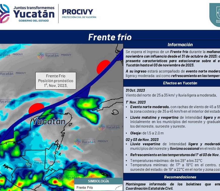 – Los efectos del sistema frontal se extenderán hasta el 1 de febrero: Procivy – Serán inferiores a los 13 grados C en el cono sur y de 13 a 15 en el Centro. – Recomienda Alcocer Basto adoptar precauciones ante la masa de aire frío en madrugadas y amaneceres – Mérida, 25 de enero de 2024.- Con descensos de … Continúa leyendo Inminente frente frío este domingo; descenderán las temperaturas