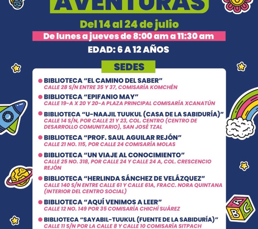 -Inscripciones abiertas para niños de 6 a 12 años en sedes distribuidas en colonias y comisarías de los cuatro puntos cardinales. -«Estamos emocionados de ofrecer la oportunidad a nuestros niños y niñas para que puedan disfrutar de un verano lleno de diversión y aprendizaje», expresa la alcaldesa Cecilia Patrón. Mérida, Yucatán, lunes 30 de junio de 2025.- Con una amplia variedad de actividades, diseñadas para … Continúa leyendo Mérida se pinta de diversión con los Cursos de Verano Mérida 2025