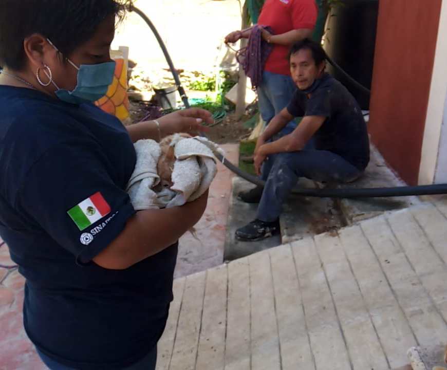 Protección Civil de Motul recarga gatitos de un pozo de 12 metros de profundidad