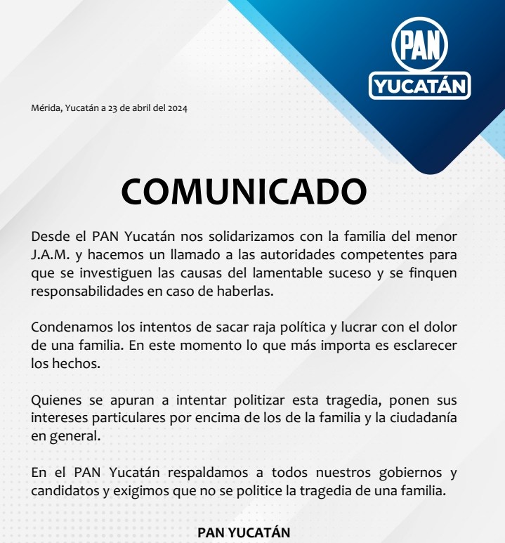 -Los hechos se registraron en una asamblea de ejidatarios, en la que una ex funcionaria y candidatos de Morena condicionaron un pago por votos a su partido El PAN Yucatán interpuso una denuncia ante el Instituto Electoral y Participación Ciudadana de Yucatán (IEPAC) en contra de Morena, y en específico, en contra de Rebeca Buenfil Méndez, Adrián Gorocica Rojas y María Fernanda Vivas, por propaganda … Continúa leyendo EL PAN YUCATÁN DENUNCIA A MORENA POR PRESIONES ILEGALES AL VOTO