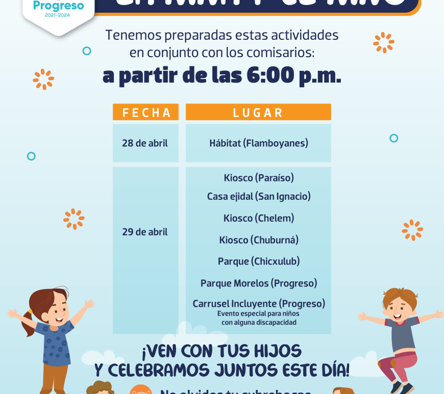 Informan buena asistencia ayer en los festivales por el día del niño. Progreso, Yucatán a 30 de abril de 2022.-Con gran alegría y mucha diversión se vivió ayer el festival del día del niño en todo el municipio. Diversas direcciones sumaron esfuerzos para ofrecer shows infantiles, actividades recreativas, regalos y hasta botargas, a fin de festejar este día especial. En punto de las 6:00pm de … Continúa leyendo Niñas y niños de Progreso celebran con mucho éxito el festival del día del niño