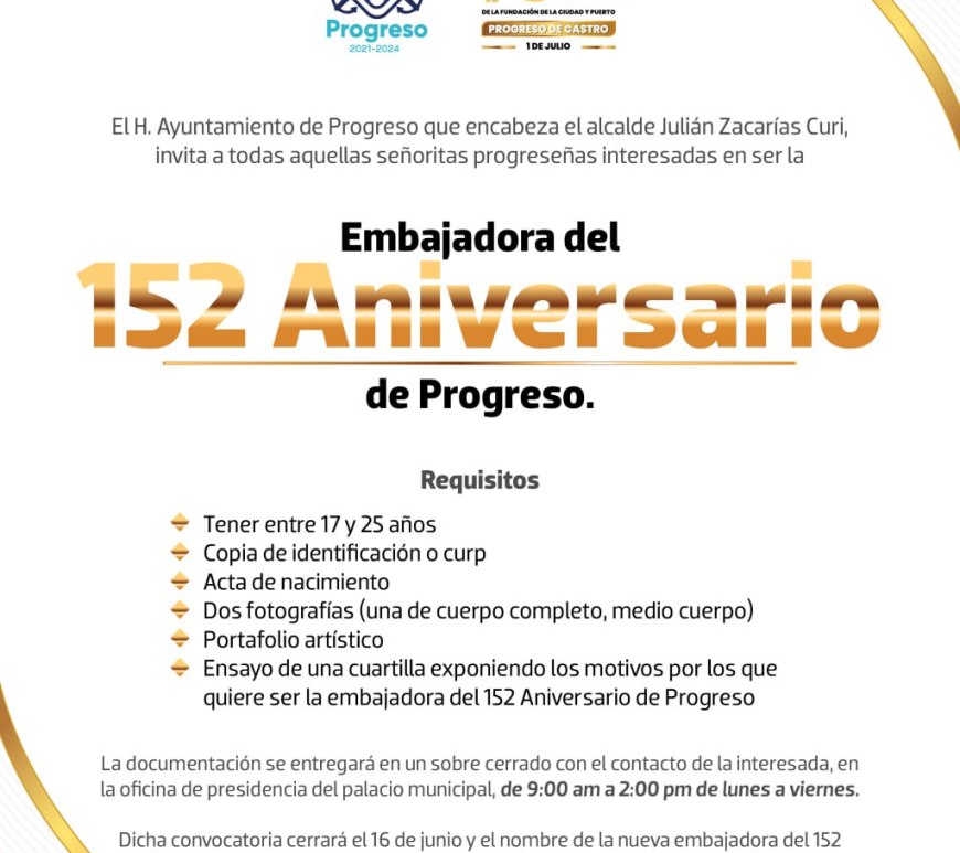 El Ayuntamiento de Progreso da a conocer las convocatorias para la entrega de la medalla de honor “Juan Miguel Castro Martín 2023” y “Embajadora del 152 Aniversario de Progreso”