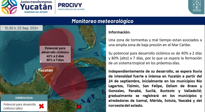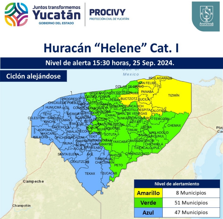 Emiten Alerta Azul para Yucatán, ante presencia de la tormenta tropical “Milton” en el Golfo de México