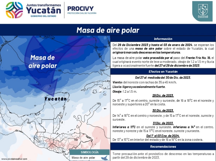 – Llamado de Procivy a la población costera y del interior del estado a resguardarse y protegerse de “norte” con vientos intensos, lluvias y frío en amaneceres – Las mínimas oscilarán de 08° a 12°C en el cono sur; de 13 a 17°C en el centro; de 17 a 19°C en el norte y superiores a 19 en la zona costera. … Continúa leyendo Inminente frente frío 32 este domingo con fuertes rachas de viento y descensos de temperaturas