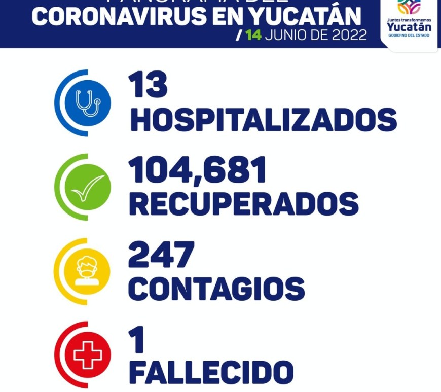 Mérida, Yucatán 14 de junio de 2022.- Este es el parte médico de este martes 14 de junio: En Yucatán se retira el uso obligatorio del cubrebocas en espacios abiertos. La medida se mantiene para los espacios cerrados y el transporte público. Se recomienda, a manera de prevención, el uso de cubrebocas en personas adultas mayores, con comorbilidades que ponen en riesgo su salud o … Continúa leyendo Detectan 247 nuevos contagios de Coronavirus