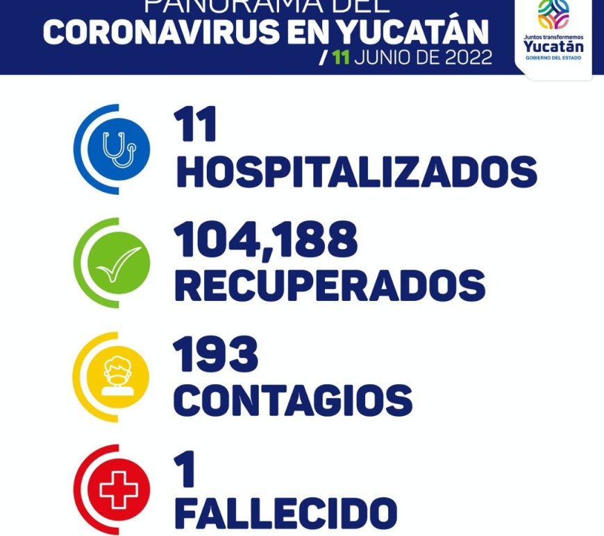 Mérida, Yucatán 11 de junio de 2022.- Este es el parte médico de este sábado 11 de junio: En Yucatán se retira el uso obligatorio del cubrebocas en espacios abiertos. La medida se mantiene para los espacios cerrados y el transporte público. Se recomienda, a manera de prevención, el uso de cubrebocas en personas adultas mayores, con comorbilidades que ponen en riesgo su salud o … Continúa leyendo Hoy se detectaron 193 nuevos contagios de Coronavirus