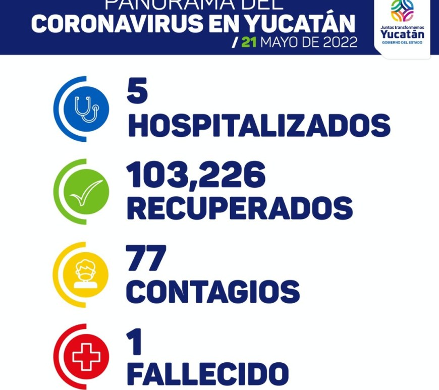 Mérida, Yucatán 21 de mayo de 2022.- Este es el parte médico de este sábado 21 de mayo: En Yucatán se retira el uso obligatorio del cubrebocas en espacios abiertos. La medida se mantiene para los espacios cerrados y el transporte público. Se recomienda, a manera de prevención, el uso de cubrebocas en personas adultas mayores, con comorbilidades que ponen en riesgo su salud o … Continúa leyendo Hoy se detectaron 77 nuevos contagios de Coronavirus