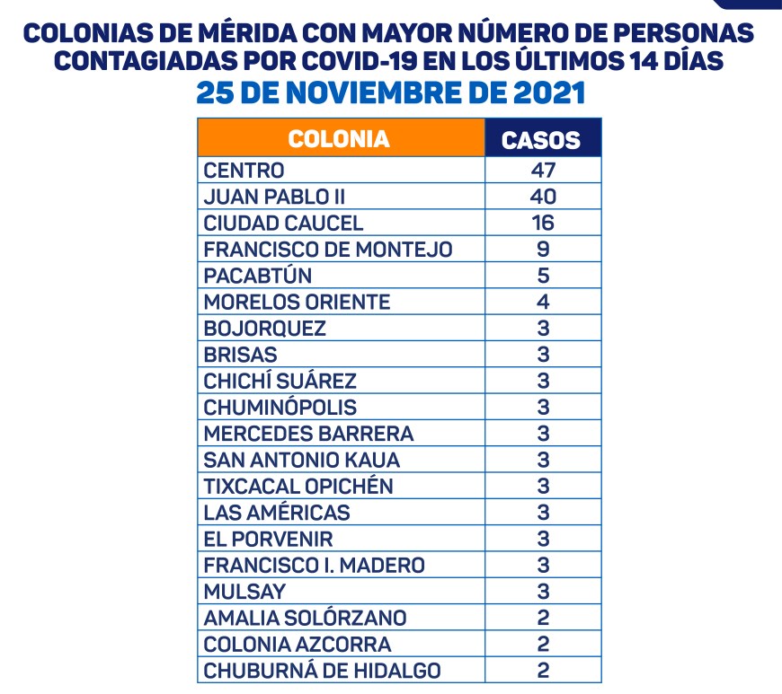 Mérida, Yucatán, 26 de noviembre de 2021.- Este es el parte médico de este viernes 26 de noviembre: Como se ha señalado, en la reapertura económica los datos más importantes son la ocupación hospitalaria y los ingresos diarios. El día de hoy tenemos 52 pacientes en hospitales públicos. 70,320 pacientes ya se recuperaron: no presentan síntomas ni pueden contagiar. Esta cifra representa el 91% del … Continúa leyendo Seis personas fallecen por COVID19