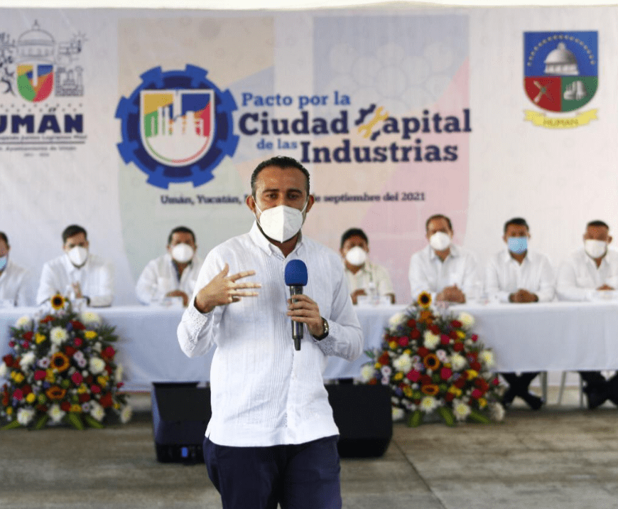 Umán, Yucatán a 27 de septiembre del 2021. Con el apoyo de empresarios, directivos de organizaciones, emprendedores y comerciantes del municipio de Umán, el Alcalde Gaspar Ventura Cisneros Polanco efectuó el pacto por la Ciudad Capital de las Industrias. “Hoy estamos concretando el proyecto que hará que Umán esté en los ojos de todo Yucatán, México y el Mundo, con la firma de este importante … Continúa leyendo El Ayuntamiento de Umán y empresarios firman el Pacto por la Ciudad Capital de las Industrias